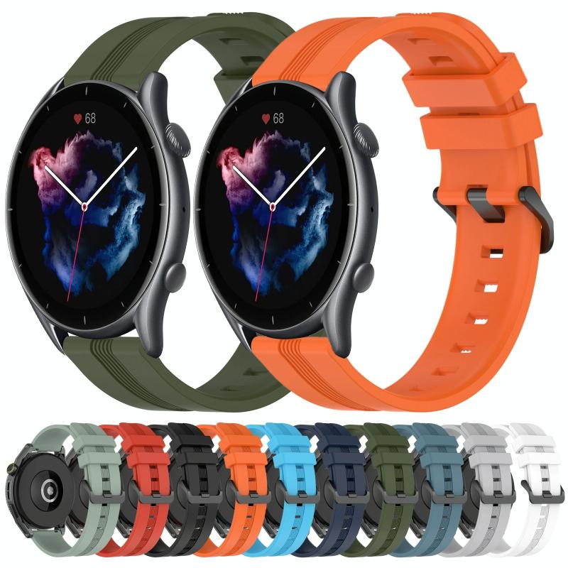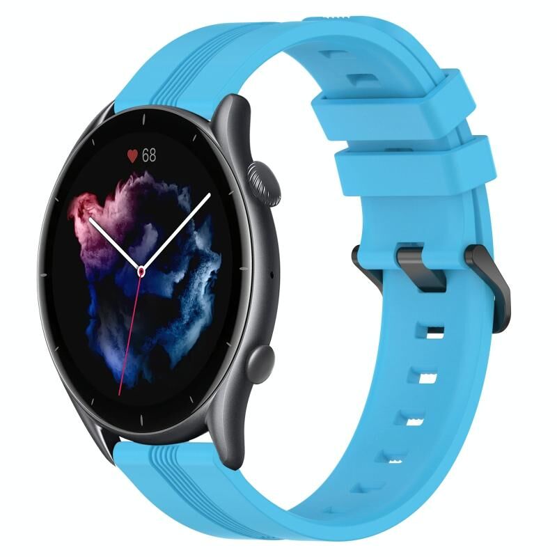 For Amazfit 3 22mm Concave Striped Slicone Watch Band(Skyblue)