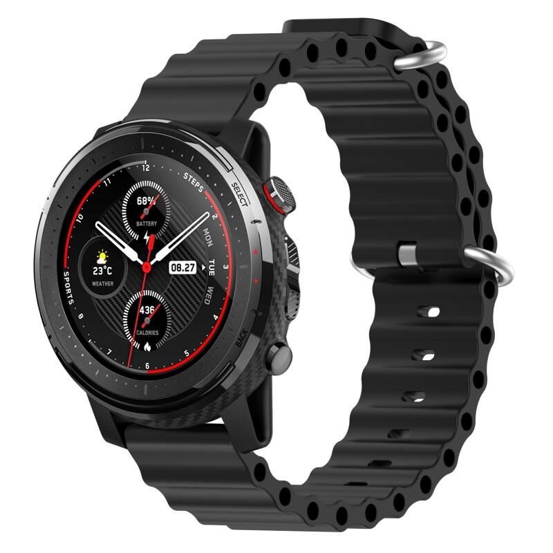 Για Amazfit 3 22 χιλιοστά Ocean Style σιλικόνης στερεό χρώμα ρολόι μπάντα (μαύρο)