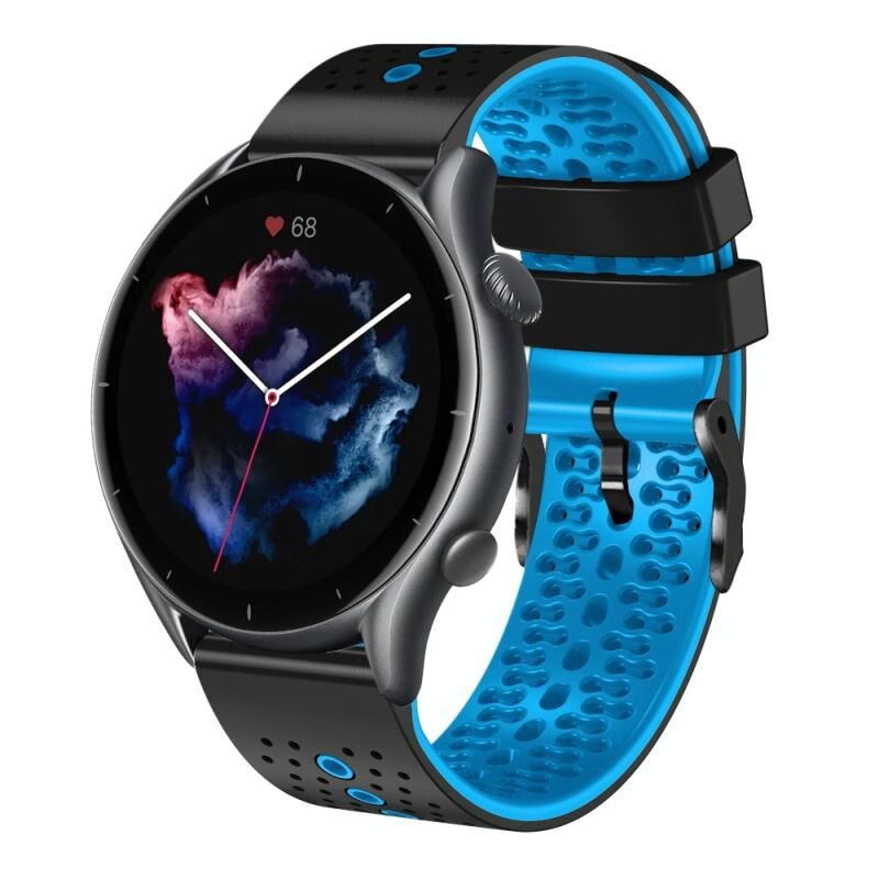 Για Amazfit 3 22 χιλιοστά διάτρητη ζώνη ρολογιού σιλικόνης δύο χρωμάτων (μαύρο + μπλε)