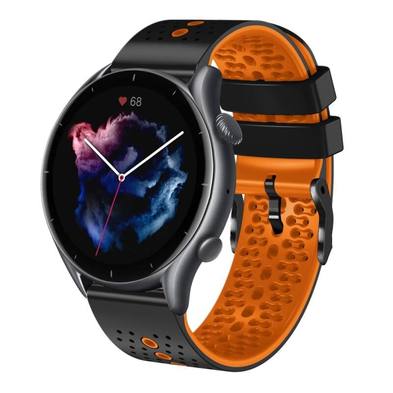 Για Amazfit 3 22 χιλιοστά διάτρητη ζώνη ρολογιού σιλικόνης δύο χρωμάτων (μαύρο + πορτοκαλί)
