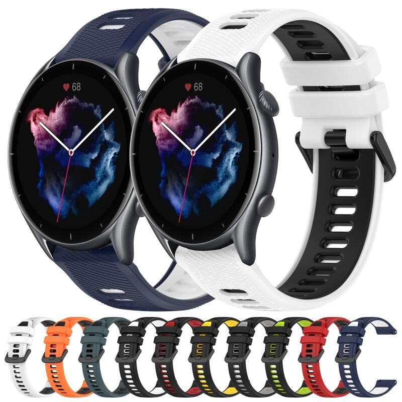 Για Amazfit 3 22MM Αθλητισμός δύο χρωμάτων σιλικόνης ρολόι μπάντα (μαύρο + πράσινο)