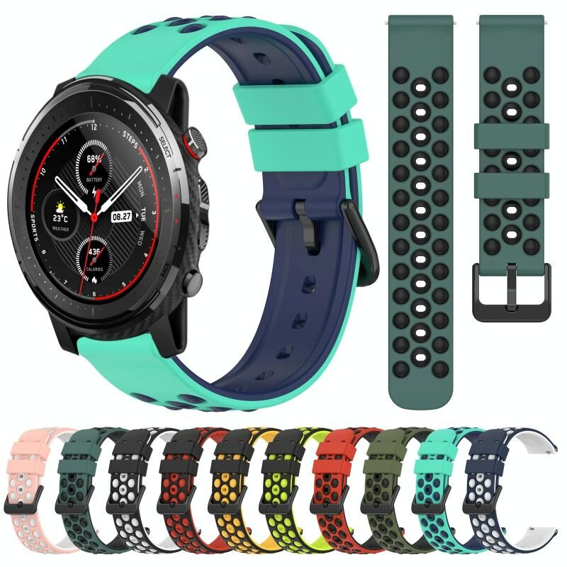 Για Amazfit 3 22 χιλιοστά δύο χρωμάτων πορώδη ζώνη σιλικόνης ρολόι (μαύρο + κίτρινο)