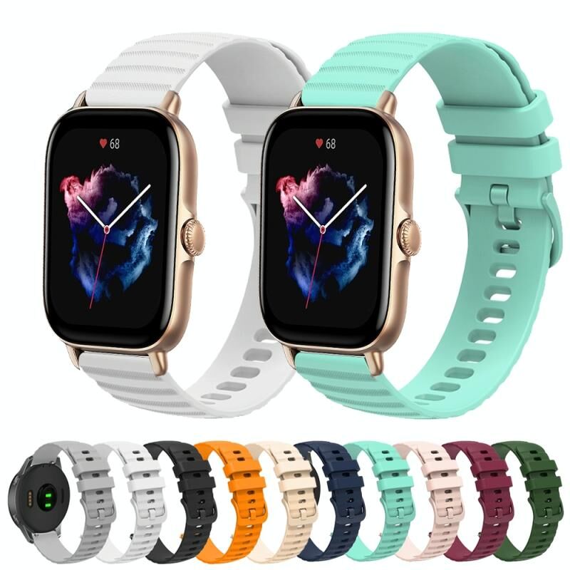 Για Amazfit 3 22 χιλιοστά κυματιστή Dot μοτίβο στερεό χρώμα σιλικόνης ρολόι μπάντα (λευκό)