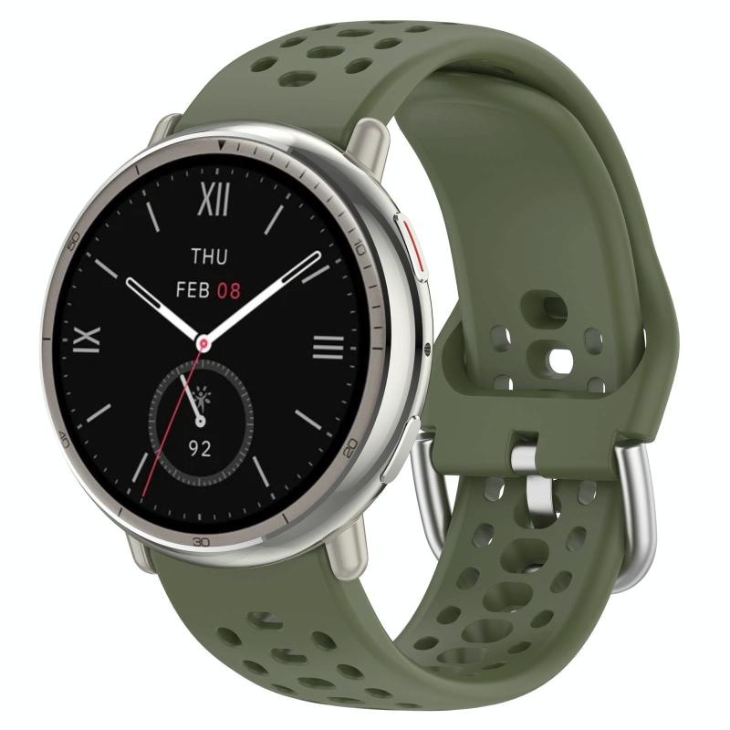 For Amazfit Active 2 Holes Style 20mm Silicone Sport Watch Band(Army Green)