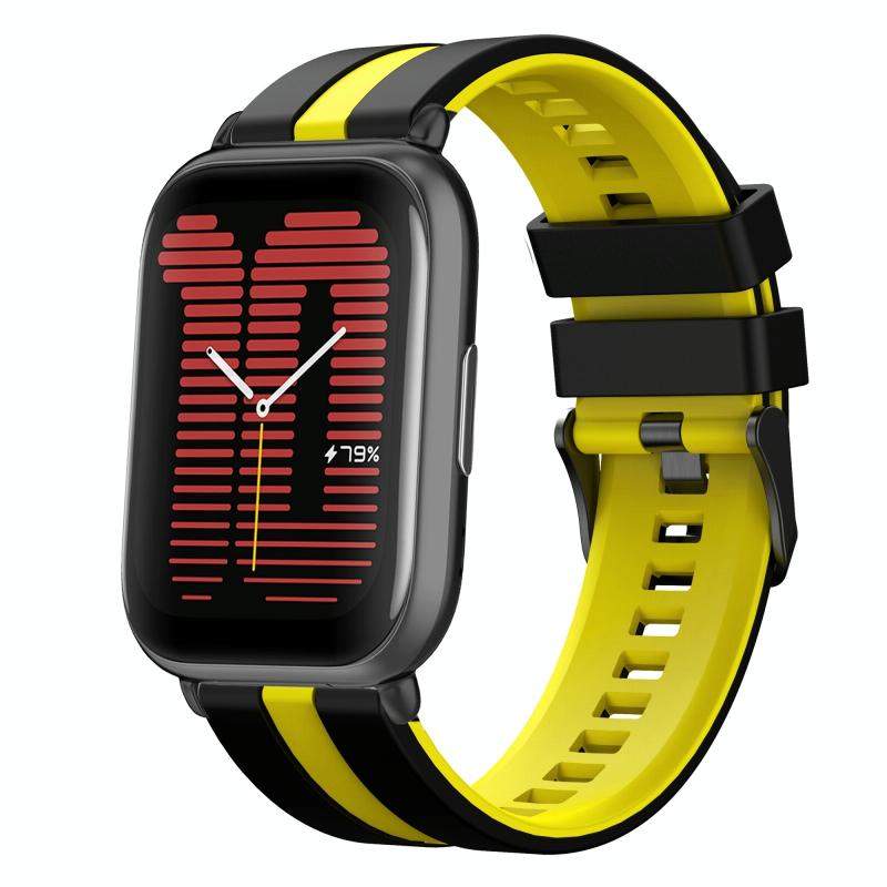 For Amazfit Active 20mm Two-Color Sports Silicone Watch Band(Black+Yellow)