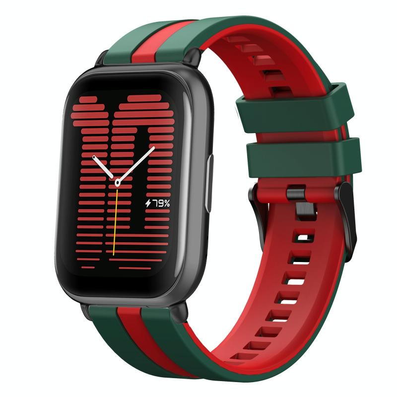 For Amazfit Active 20mm Two-Color Sports Silicone Watch Band(Green+Red)
