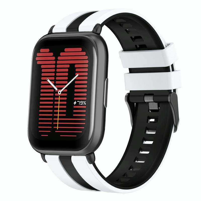 For Amazfit Active 20mm Two-Color Sports Silicone Watch Band(White+Black)