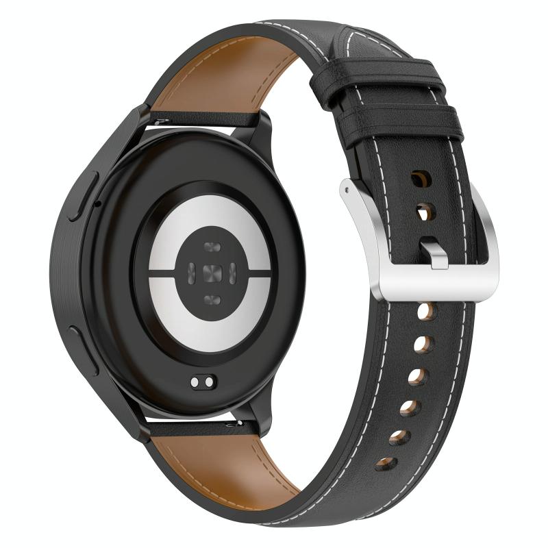 For Amazfit Active Stainless Steel Quick Release Buckle 20mm Genuine Leather Watch Band(Black)