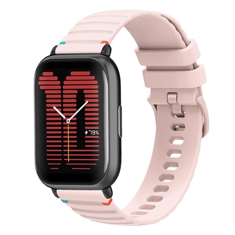 For Amazfit Active Wavy Dotted Stitched 20mm Silicone Watch Band(Rose Pink)