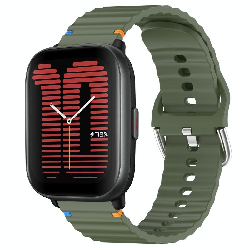 For Amazfit Active Wavy Grain Stitched 20mm Silicone Watch Band(Army Green)