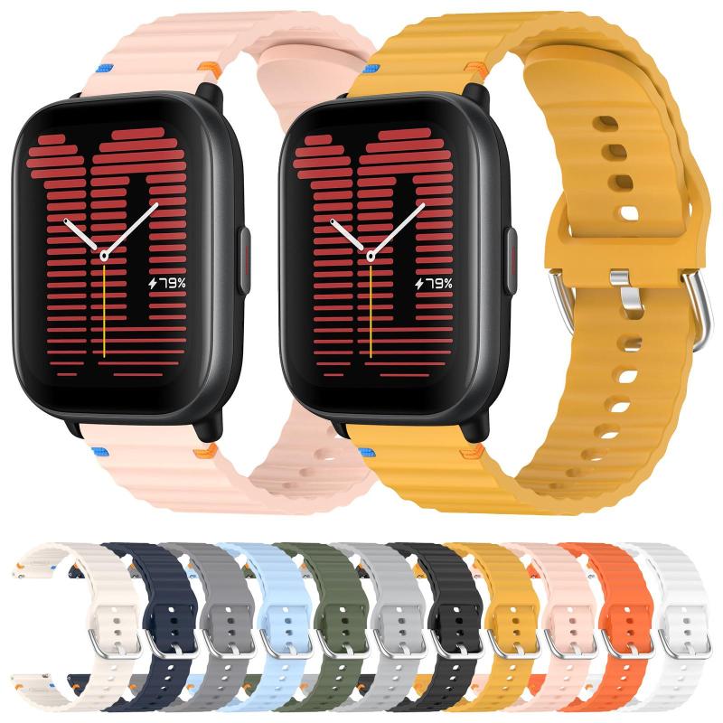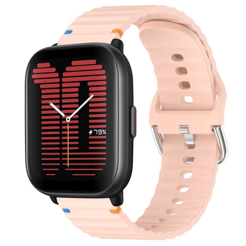 For Amazfit Active Wavy Grain Stitched 20mm Silicone Watch Band(Pink)