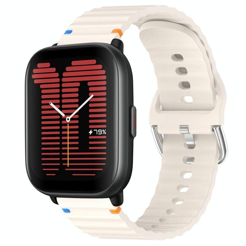 For Amazfit Active Wavy Grain Stitched 20mm Silicone Watch Band(Starlight)