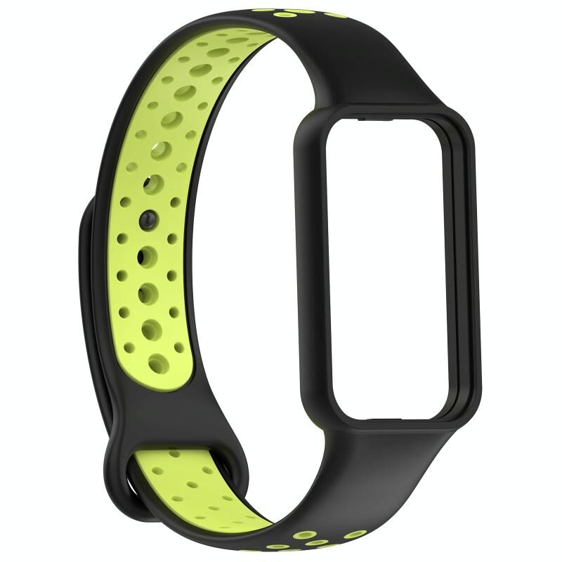 Για Amazfit Band 7 Loop Δύο-χρώμα αναπνεύσιμο σιλικόνης ρολόι μπάντα (μαύρο + Lime)