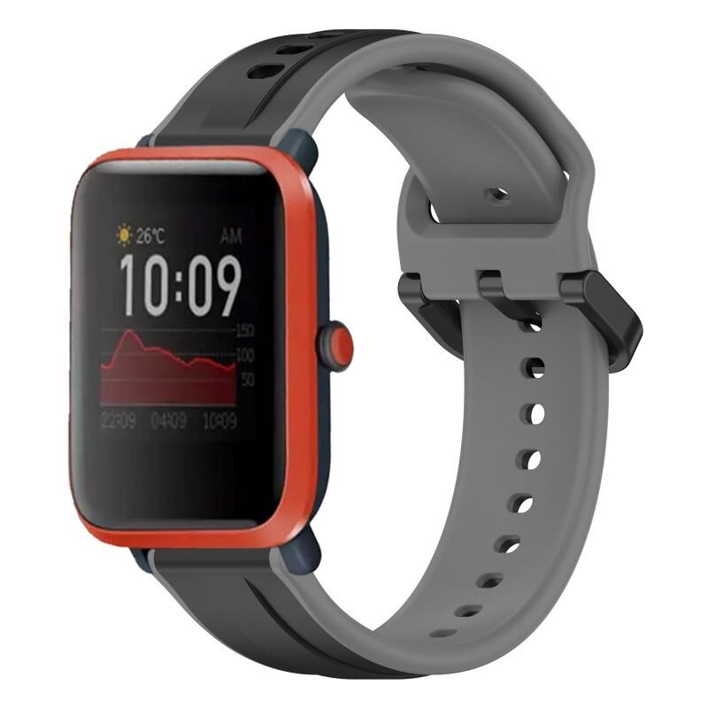 Για Amazfit Bip 1S 20 χιλιοστά κυρτό βρόχο δύο χρωμάτων σιλικόνης ρολόι μπάντα (μαύρο + γκρι)