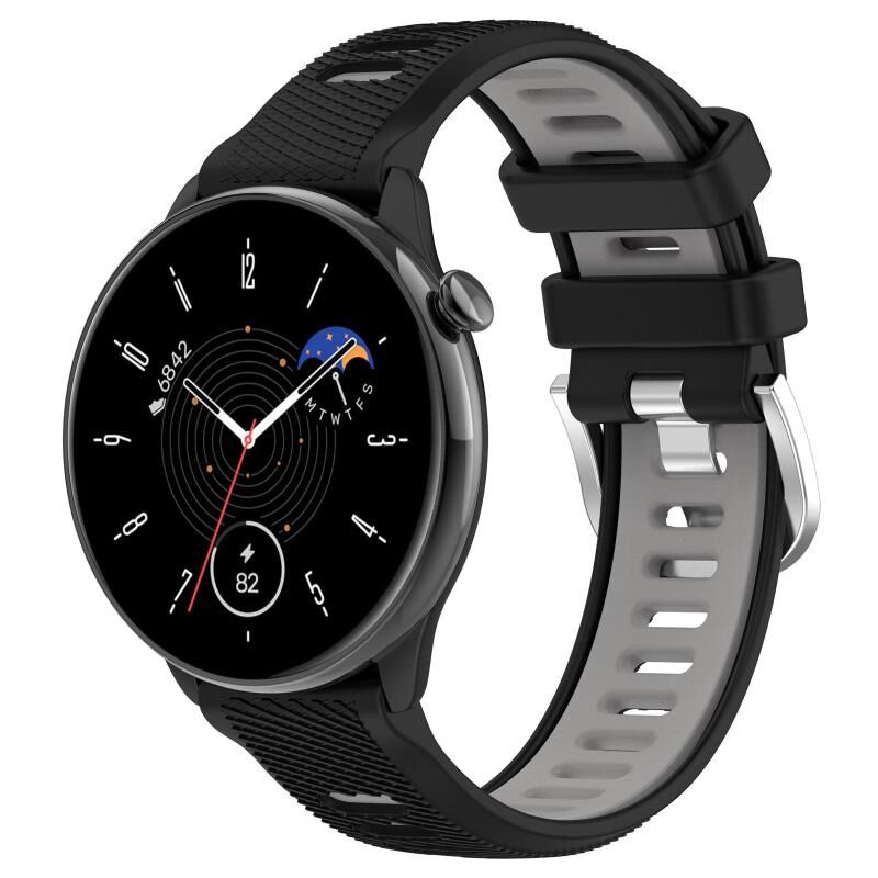For Amazfit Bip 1S 20mm Cross Texture Two Color Silicone Steel Buckle Watch Band(Black+Grey)