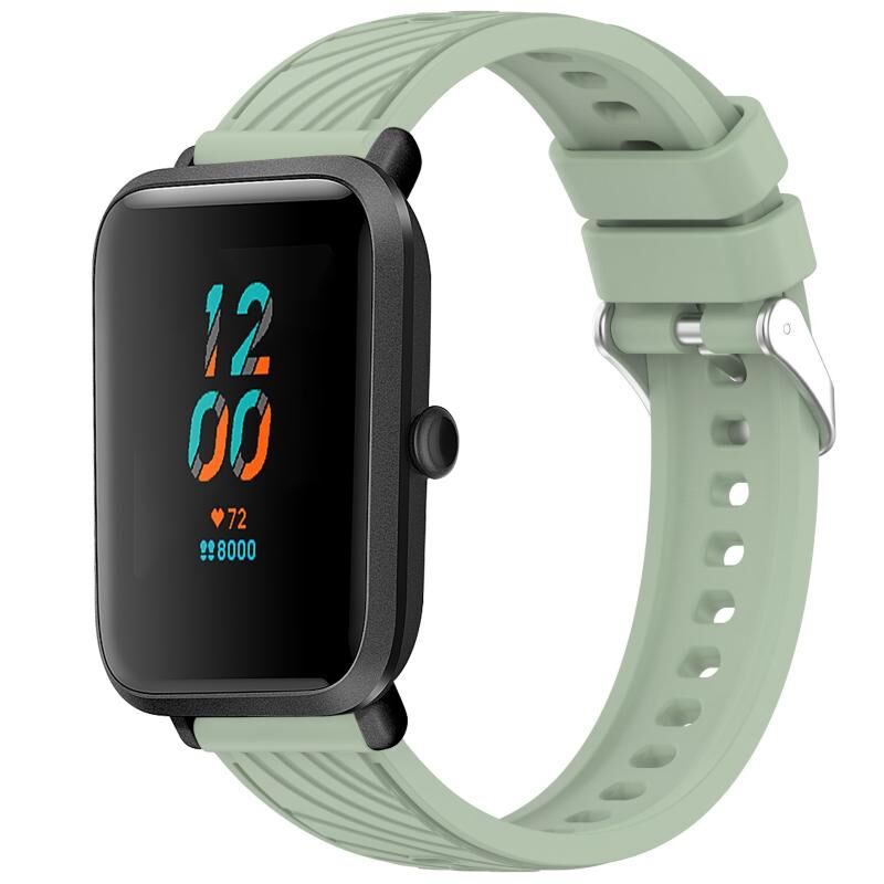 Για Amazfit Bip 1S Λουρί Σιλικόνης για Ρολόι με Υφή Ρίγας 20mm (Σκούρο Πράσινο)