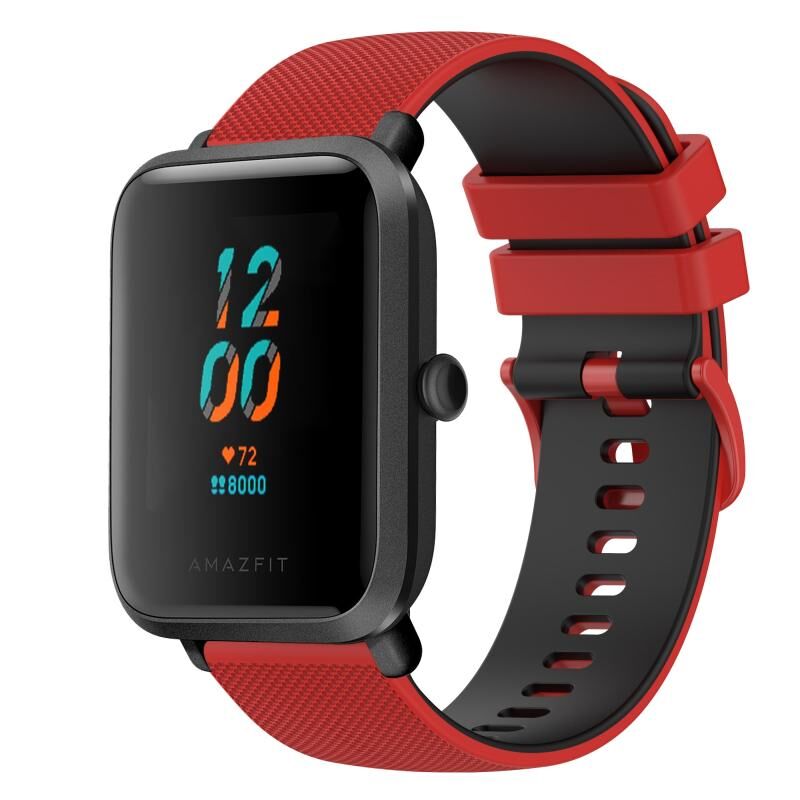 For Amazfit BIP 20mm Checkered Two-Color Silicone Watch Band(Red+Black)