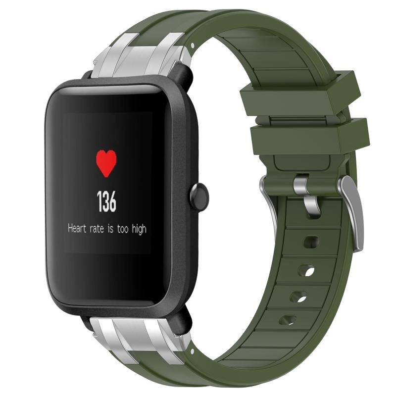 For Amazfit Bip 20mm Quick Release Silver Buckle Royal Silicone Watch Band(Olive Green)