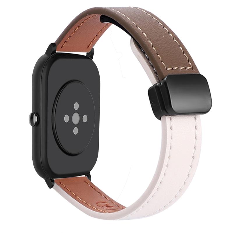For Amazfit Bip 3 Pro Slim Magnetic Buckle 20mm Microfiber Leather Watch Band(Apricot+Caramel Macchiato)