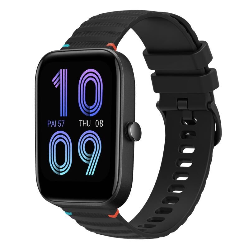 For Amazfit Bip 3 Pro Wavy Dotted Stitched 20mm Silicone Watch Band(Black)