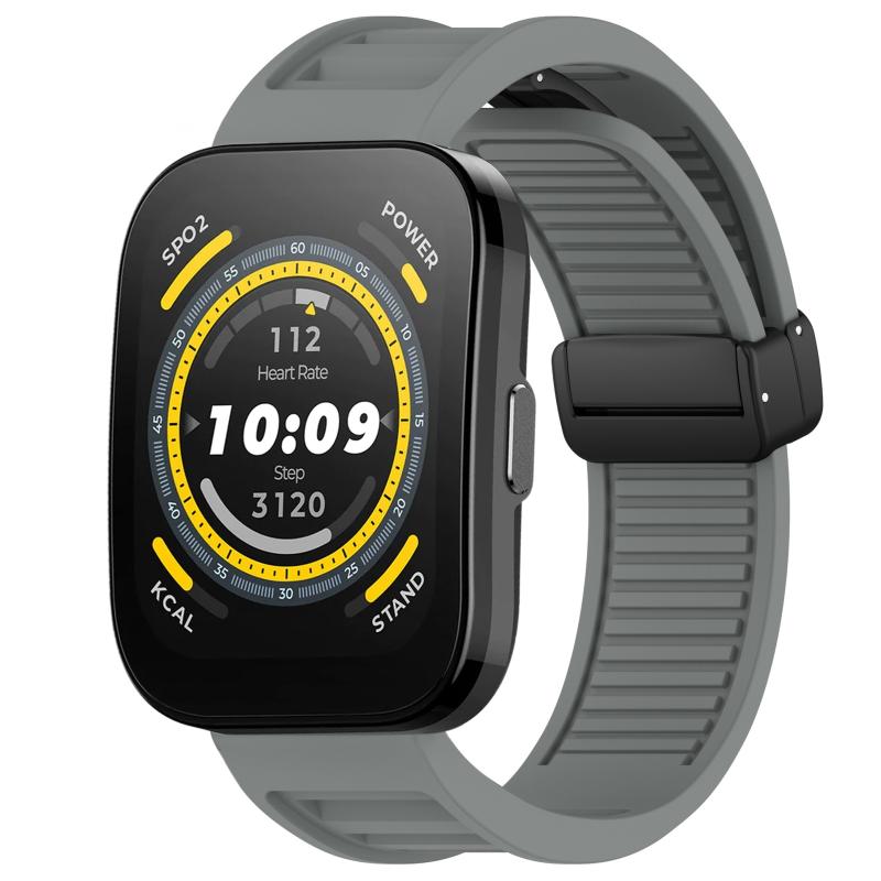 For Amazfit Bip 5 22mm Fold Magnetic Buckle Silicone Watch Band(Grey)