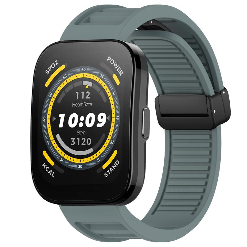 For Amazfit Bip 5 22mm Fold Magnetic Buckle Silicone Watch Band(Rock Cyan)