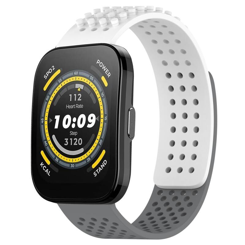 Για Amazfit Bip 5 Λουράκι Σιλικόνης για Ρολόι με Αναπνεύσιμες 3D Κουκίδες και Τρύπες 22mm (Λευκό+Γκρι)