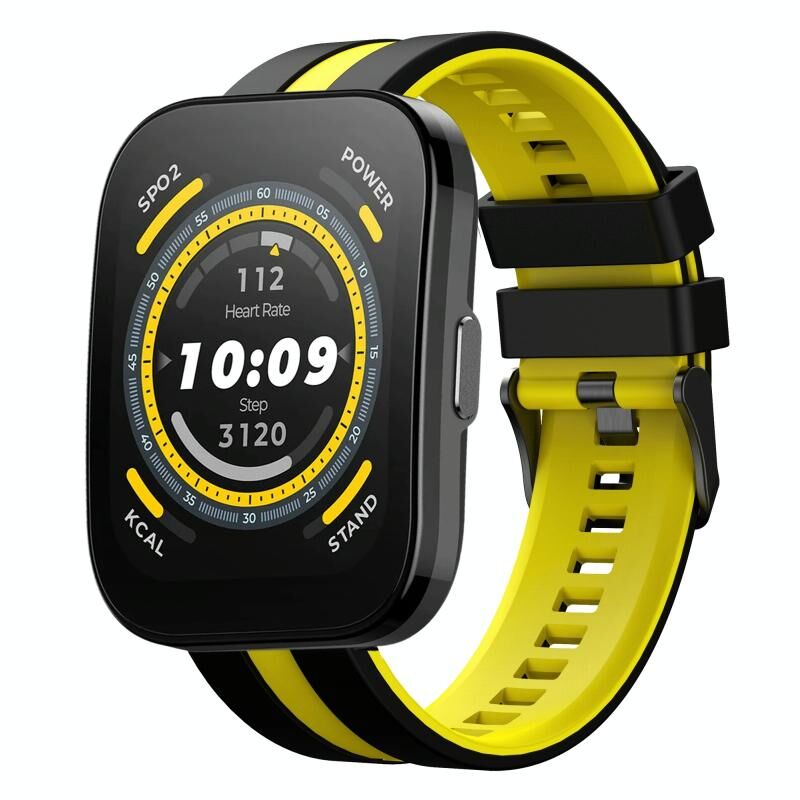 Για Amazfit Bip 5 22 χιλιοστά δύο χρωμάτων αθλητική ζώνη σιλικόνης ρολόι (μαύρο + κίτρινο)