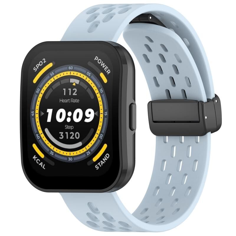 For Amazfit Bip 5 Folding Magnetic Clasp Silicone Watch Band(Light Blue)