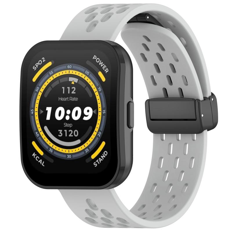 For Amazfit Bip 5 Folding Magnetic Clasp Silicone Watch Band(Light Gray)