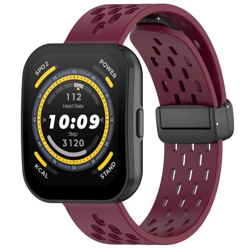 For Amazfit Bip 5 Folding Magnetic Clasp Silicone Watch Band(Wine)
