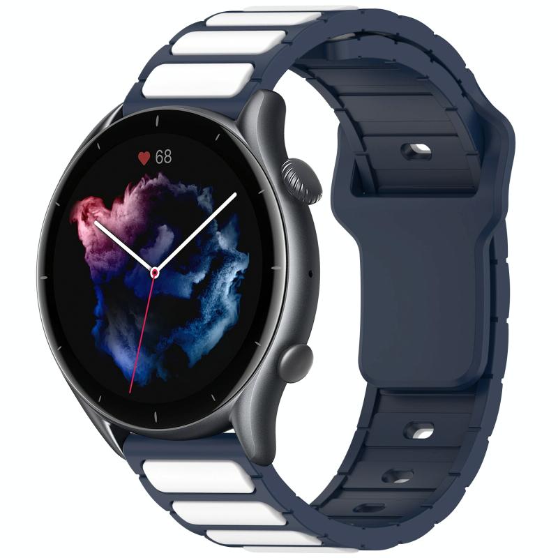For Amazfit Bip 5 / GTR 4 / GTR 3 Flat Head Dual Color 22mm Quick Release Silicone Watch Band(Midnight Blue White)