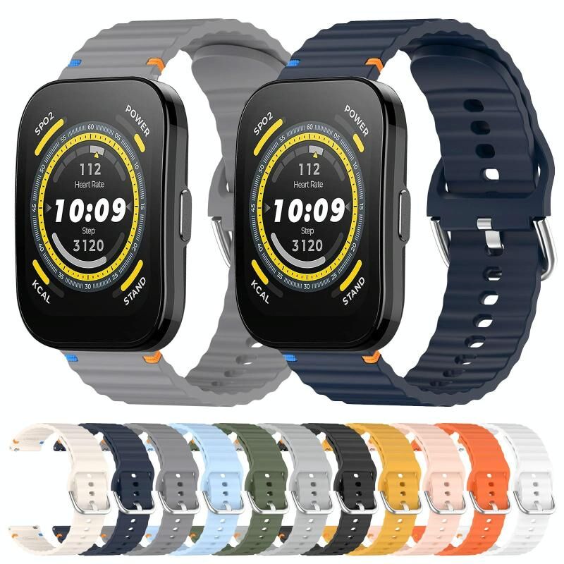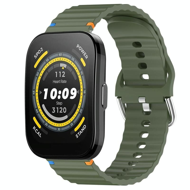 Για Amazfit Bip 5 / GTR 4 Wavy Grain Stitched 22 χιλιοστά ζώνη σιλικόνης ρολόι (Στρατού πράσινο)
