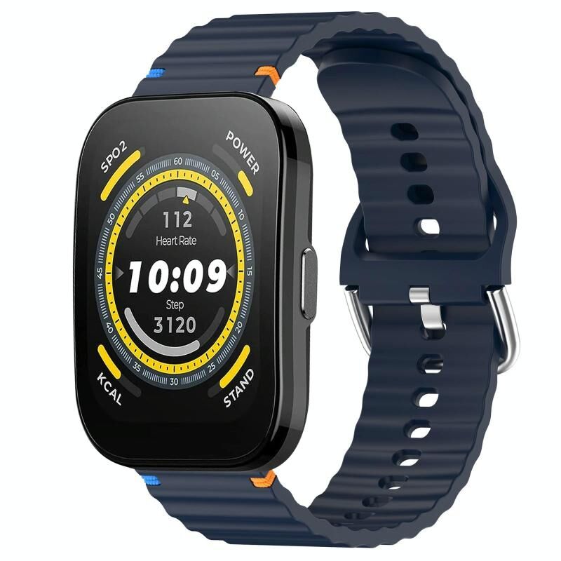 Για Amazfit Bip 5 / GTR 4 Wavy Grain Stitched 22mm Silicone Watch Band (Midnight Blue)