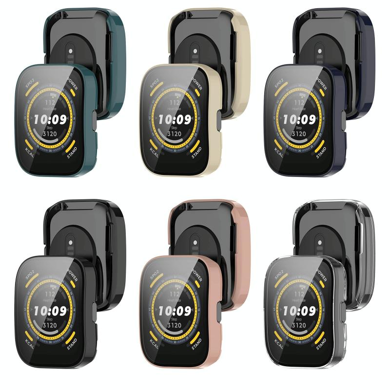 For Amazfit Bip 5 Tempered Film Integrated PC Watch Protective Case(Ivory)