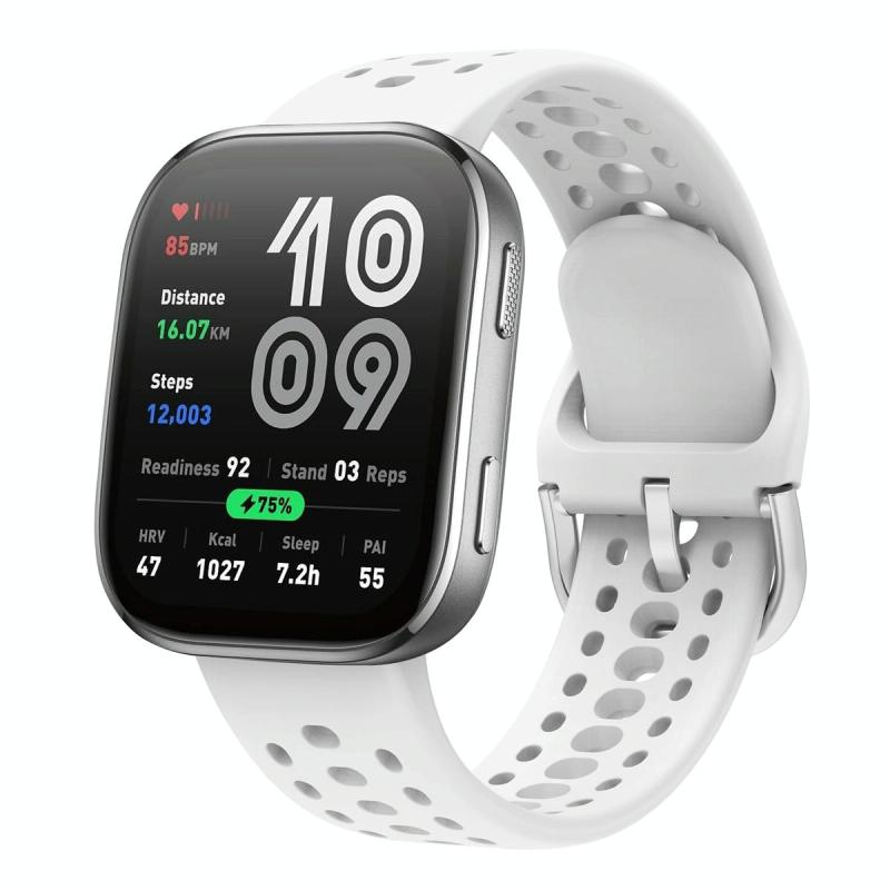 For Amazfit Bip 6 Silver Buckle Solid Color Silicone Watch Band(White)