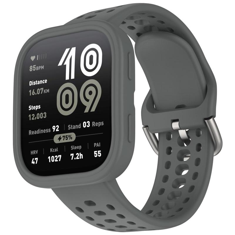 For Amazfit Bip 6 Sofe Case Integrated Silicone Watch Band(Space Grey)