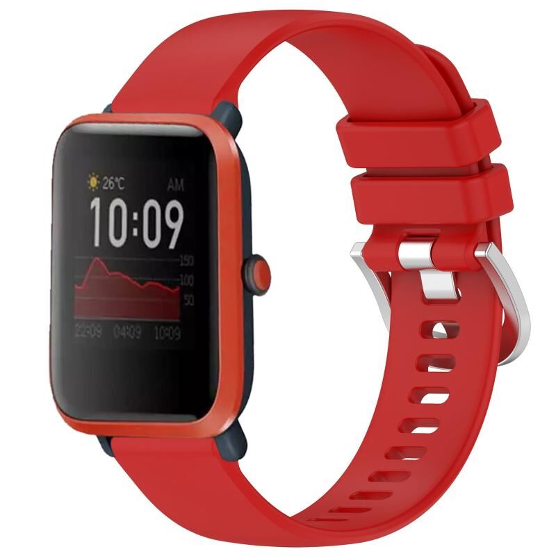 Για Amazfit Bip / Bip Lite / Bip 1S 20 χιλιοστά υγρό γυαλιστερό ασημί πόρπη σιλικόνης ρολόι μπάντα (κόκκινο)