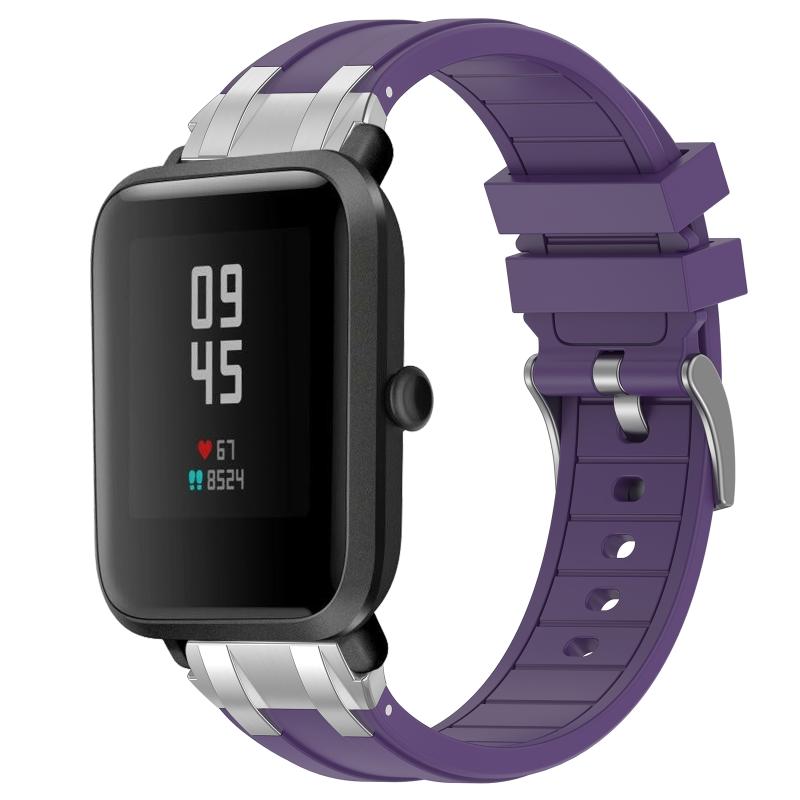 For Amazfit Bip Lite 20mm Quick Release Silver Buckle Royal Silicone Watch Band(Purple)