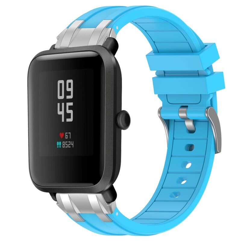 For Amazfit Bip Lite 20mm Quick Release Silver Buckle Royal Silicone Watch Band(Sky Blue)
