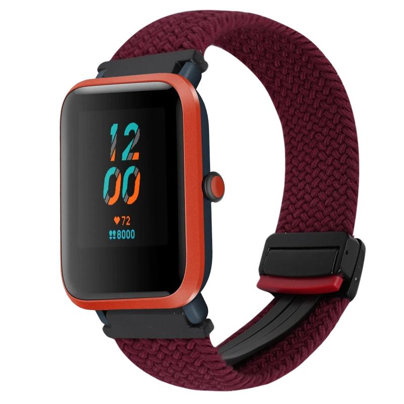 For Amazfit Bip Magnetic Buckle 20mm Braided Watch Band(Wine Red)