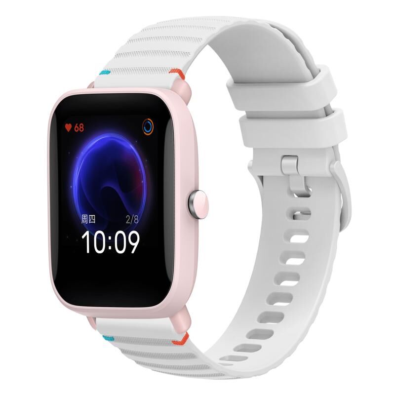 For Amazfit Bip U Wavy Dotted Stitched 20mm Silicone Watch Band(White)