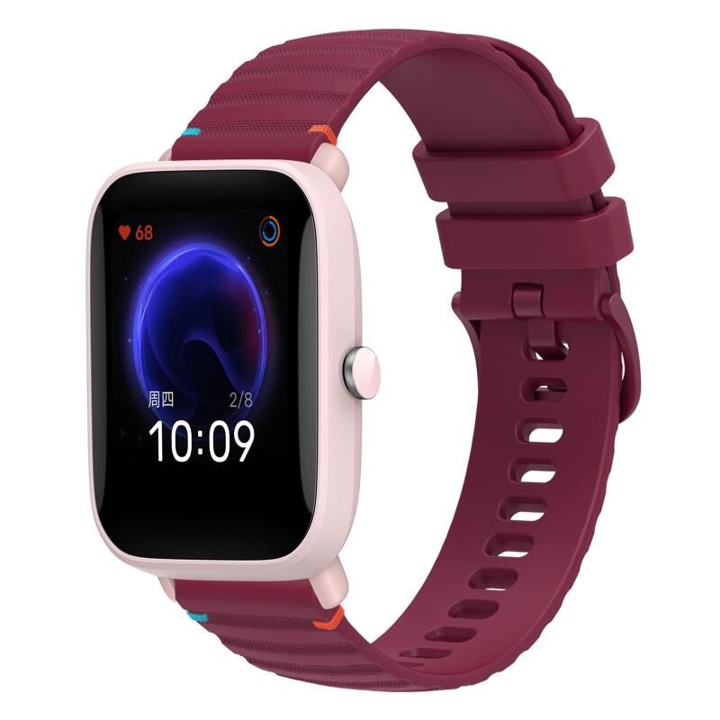 For Amazfit Bip U Wavy Dotted Stitched 20mm Silicone Watch Band(Wine Red)