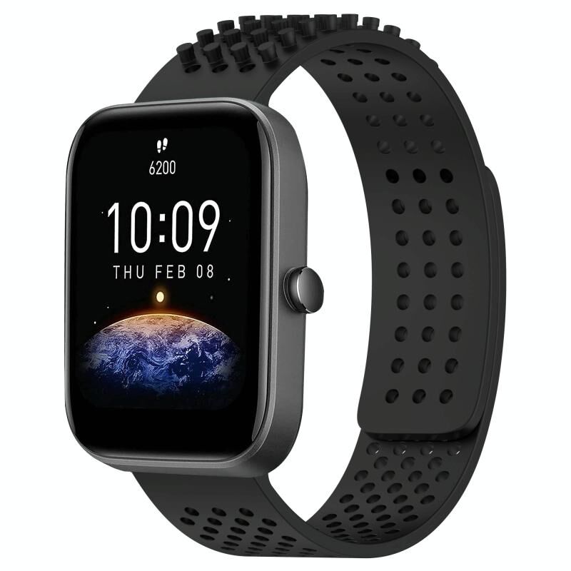 For Amazfit Bip3 20mm Holes Breathable 3D Dots Silicone Watch Band(Black)
