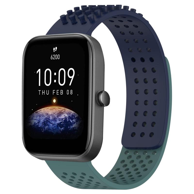 For Amazfit Bip3 20mm Holes Breathable 3D Dots Silicone Watch Band(Midnight Blue+ Olive Green)