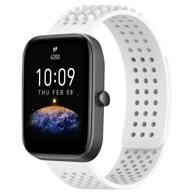 For Amazfit Bip3 20mm Holes Breathable 3D Dots Silicone Watch Band(White)