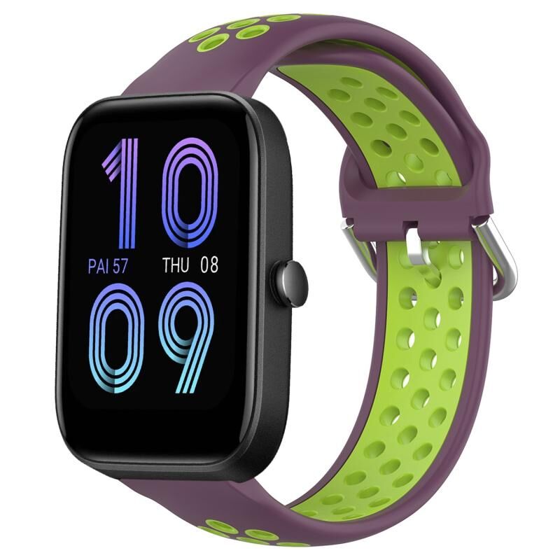 For Amazfit Bip3 20mm Perforated Breathable Sports Silicone Watch Band(Purple+Lime)
