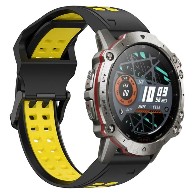 For Amazfit Falcon 22mm Two-Color Breathable Sports Silicone Watch Band(Black+Yellow)