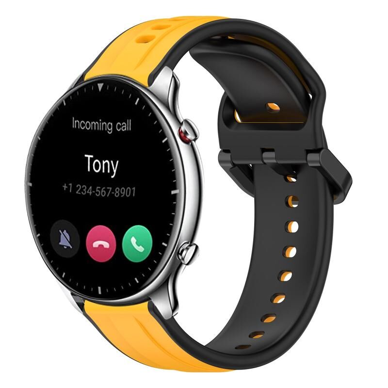 Για Amazfit GTR 2 22 χιλιοστά κυρτό βρόχο δύο χρωμάτων σιλικόνης ρολόι μπάντα (κίτρινο + μαύρο)