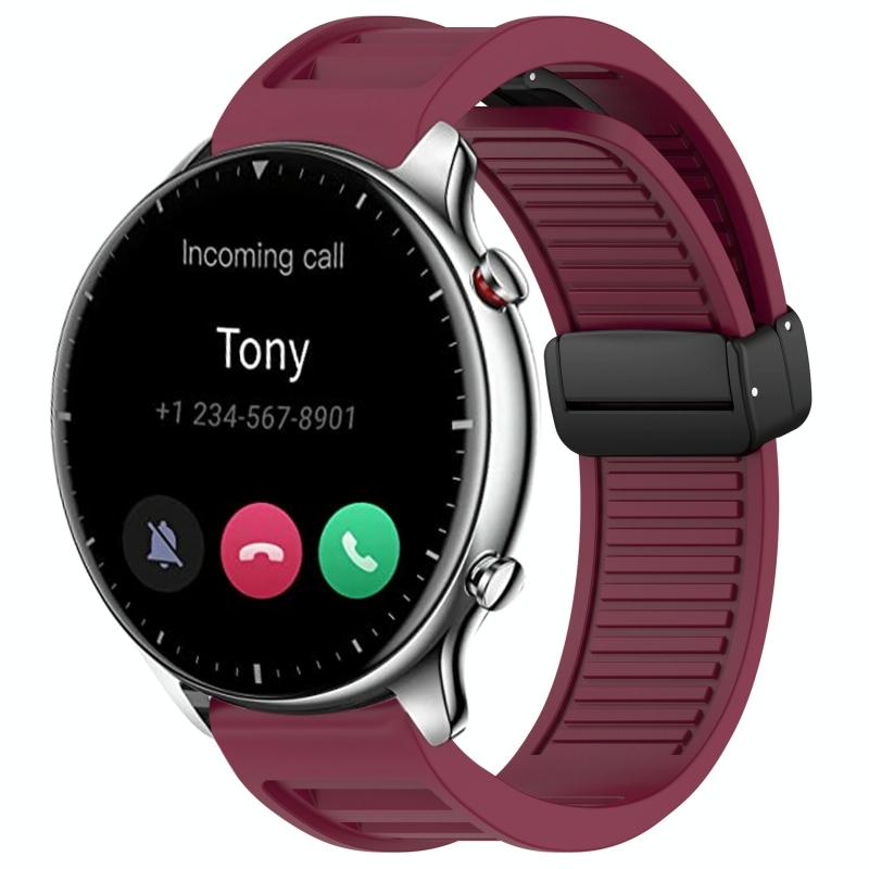 For Amazfit GTR 2 22mm Fold Magnetic Buckle Silicone Watch Band(Wine Red)